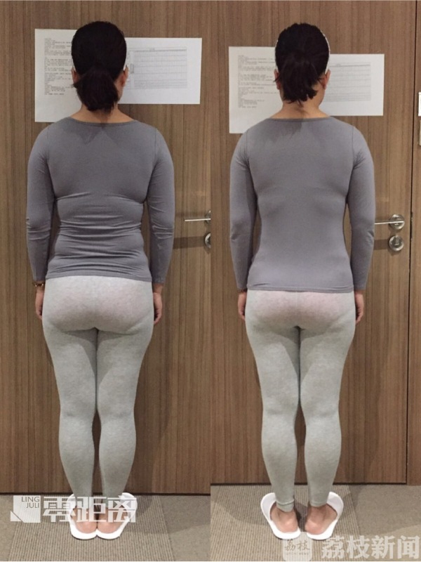 进行一次整骨术后,香住SPA为吴女士拍摄了一组对比照,能看出她的臀部似乎有一些变化。但第二天再拍,又恢复了原状,既没变瘦,也没变翘臀,左看右看上看下看还是原来那样。