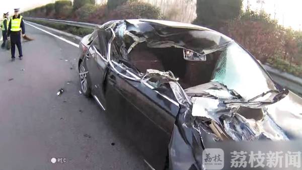 民警到达现场发现,奥迪轿车右侧车头几乎报废,副驾驶的车顶也被掀掉了,车辆零部件散落一地。被追尾的货车停在距离现场约50米远的应急车道。