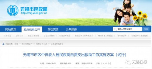 今年9月,我市出台《无锡市区中低收入居民疾病自费支出救助工作实施方案(试行)》,在国内第一次通过政府出资投保的市场化模式,对市区中低收入居民的疾病医疗自费支出按一定比例给予救助。