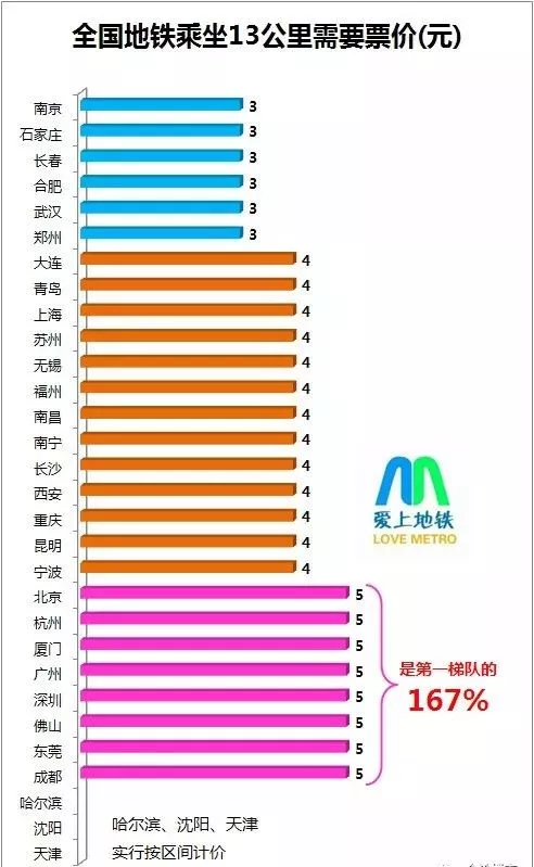 注:本文中对比的是各个城市的单程票价,不涉及持卡乘客获取优惠。