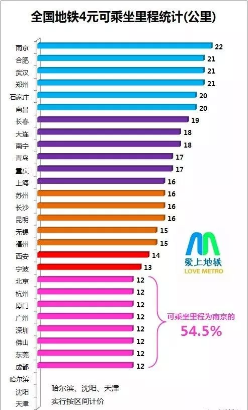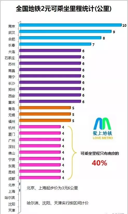 花2元钱,南京可乘坐10公里,是按照里程计价的27个城市中,可乘坐距离最远的城市。乘坐距离最少的为成都等9个城市,只能乘坐4公里,仅为南京的40%。