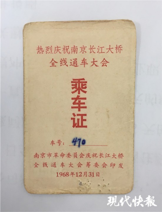 “这张乘车证是1968年大桥通车那天发的,驾驶员师傅叶应宝把这张票送给我,我一直像宝贝一样留着。”记者看到,这张纸质的乘车证虽已泛黄,但保存完好,上面有车号,有印发时间。老照片上也定格了年轻时候的她和小姐妹在大桥上的美好画面。