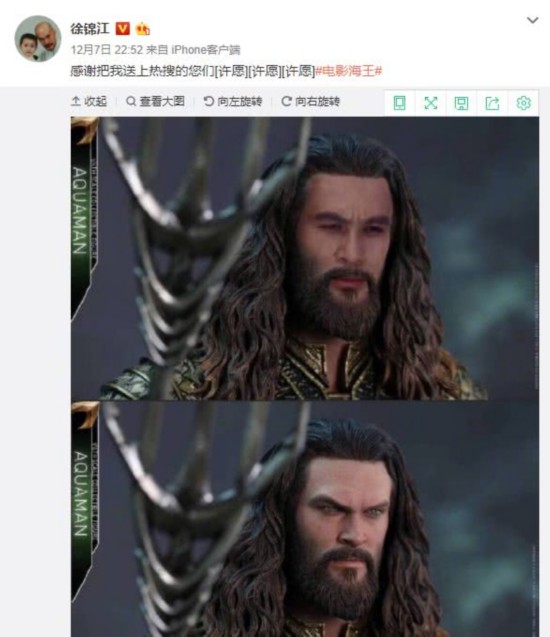 前不久才刚刚因为海王奇妙撞脸徐锦江老师引发了热议,徐锦江老师也是调皮地与海王立牌合照,调侃道“感谢把我们送上热搜”。