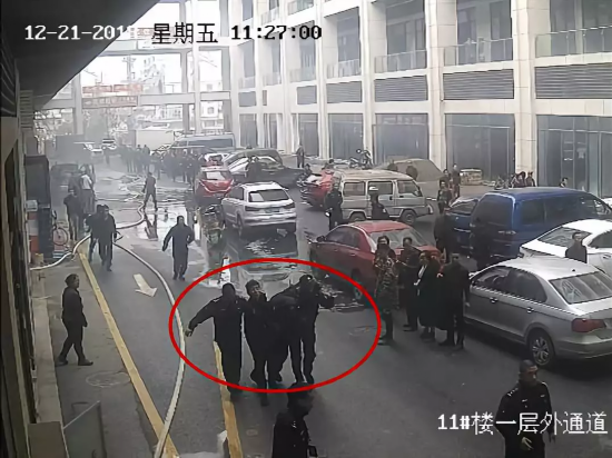 持续的高压水枪和灭火器扑救,让乙炔罐体的温度降低,火势慢慢小了下来。几分钟内,派出所增援警力和消防队员也迅速赶到了现场。