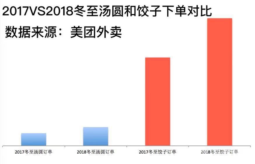 根据统计的22日饺子单量,南京售出近5万份饺子,环比增长6成,汤圆成双倍增长。虽然在南方,但是南京点饺子的比点汤圆的多4倍,在南京用户中饺子略胜一筹。
