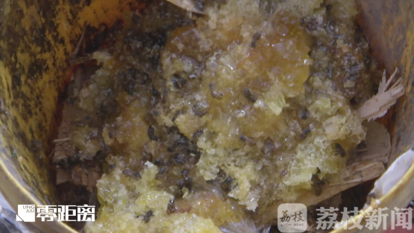当天晚上,顾先生从地板下掏出整整4大袋,将近50斤的蜂蜜。第二天上午(12月21日),又掏出了半塑料桶,他说,现在地板开的口子比较小,下面还有很多没能掏出来。顾先生称,接下来,他打算将阳台的地板掀开,看看地板下面,究竟藏了多少蜂蜜。