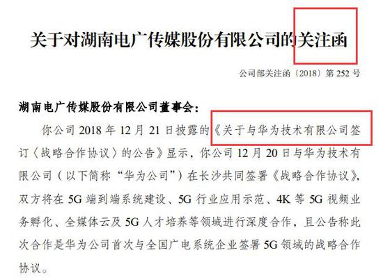 另外,深交所还质疑,电广传媒在5月就披露跟华为有一份合作协议,公告显示该事项进展情况为“正在推进”,近年又跟福建广电网络集团股份有限公司等其他相关方曾签署多项战略合作协议,亦未见具体进展的披露。