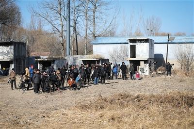 昨日,众多拍摄者在现场等候拍摄毛脚鵟\。本版摄影/新京报记者 彭子阳