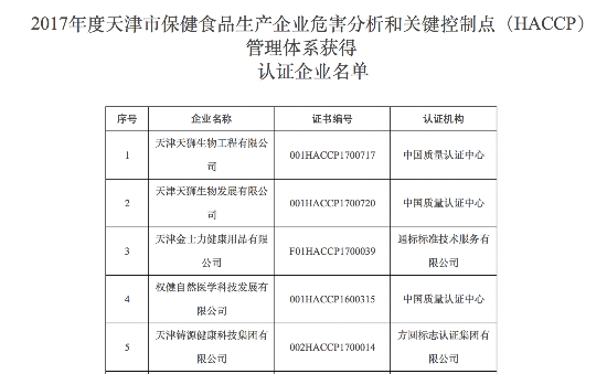 此外,在天津市市场监督管理委员会官网25日公布的 《天津市市场监督管理委员会关于2018年度保健食品生产企业危害分析和关键控制点(HACCP)管理体系认证结果的公告》,上榜《2017年度天津市保健食品生产企业危害分析和关键控制点(HACCP)管理体系获得认证企业名单》的权健自然医学科技发展有限公司并未继续获得2018年度的认证。