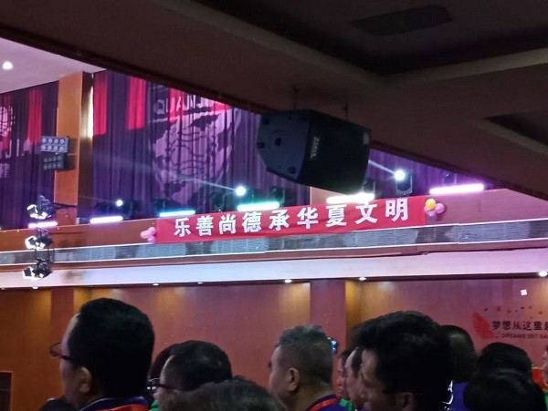 会议已经开始,目前场外仍有少数没有紫色文化衫的参会人员没有进场,虽然他们都手握统一的参会入场券。