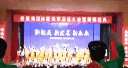 13点12分,大会新环节——文艺表演“拍手舞”开始。现场口号“功在华夏,誉满全球”。主持人介绍,刚才登台表演节目的人员级别为“皇冠大使”。