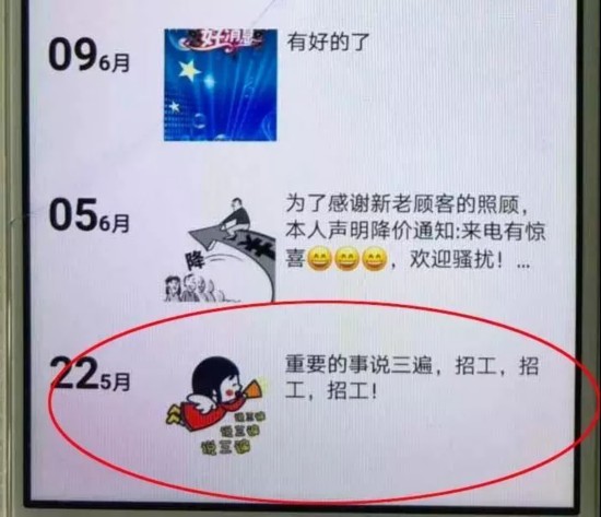 为了招募“马仔”,黄某还通过朋友圈发布所谓的“招工”信息。