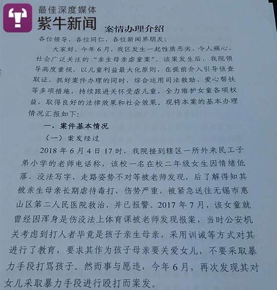 据了解,洁洁就读于当地一所外来民工子弟学校,洁洁随在无锡打工的生母和继父一起生活。洁洁说,之所以被打,是因为被母亲怀疑她偷拿家里大人和同学的少量财物、食品等。而其继父在看到其被打时麻木不仁、视若无睹,甚至偶尔亦参与殴打。