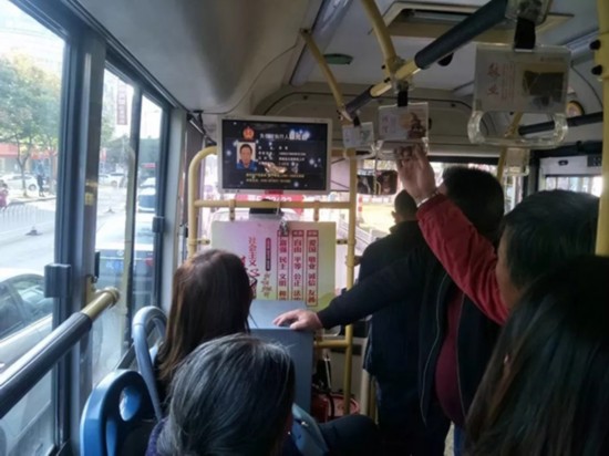 每辆公交车每天滚动播出150次,曝光的内容包含姓名、照片、身份证号码、执行标的等信息,视频中的“老赖”照片采用醒目的大头贴方式,视觉冲击力较强,许多乘客一改以往低头看手机的习惯,纷纷抬头观看,部分市民还拿起手机拍摄转发。