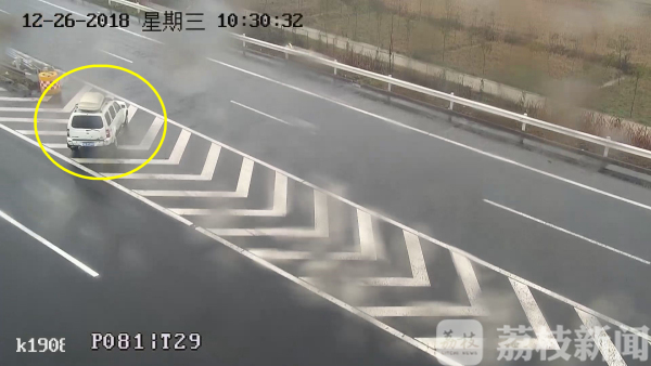 昨天(12月26日)10时29分许,淮安交警高速三大队勤务指挥室民警在执行视频巡检任务,对G25长深高速上行线1908公里+800米处的监控探头巡查时发现,一辆号牌为苏H开头的白色轿车竟然在超车道内倒车,处境十分危险。