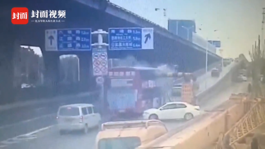 28日,一段名为“武汉大巴撞击限高架瞬间”的视频曝光,视频中,一辆双层大巴车笔直地往前行驶,在一处高架桥的位置,撞击限高架,往前行驶了数米之后才停下。