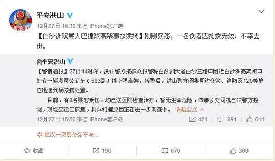 16时30分,“平安洪山”再次发布通报,称一名伤者因抢救无效,不幸去世。