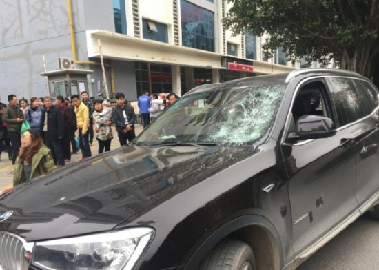 12月27日,南宁市长湖路某小区门口,一女子莫名将自家宝马车车窗玻璃砸碎,并跪在地上向路人哭诉。怎么回事?