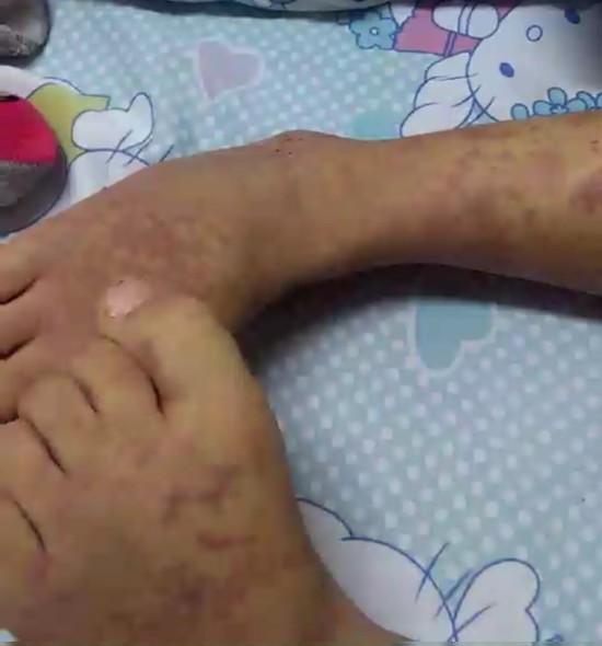 一名儿童被确诊为过敏性紫癜仍在接受治疗。受访者供图