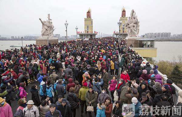 2018年12月27日,南京长江大桥上人头攒动。经过全封闭维修改造后的南京长江大桥公路桥迎来第二个向公众开放日,众多游人和南京市民前来参观游览。