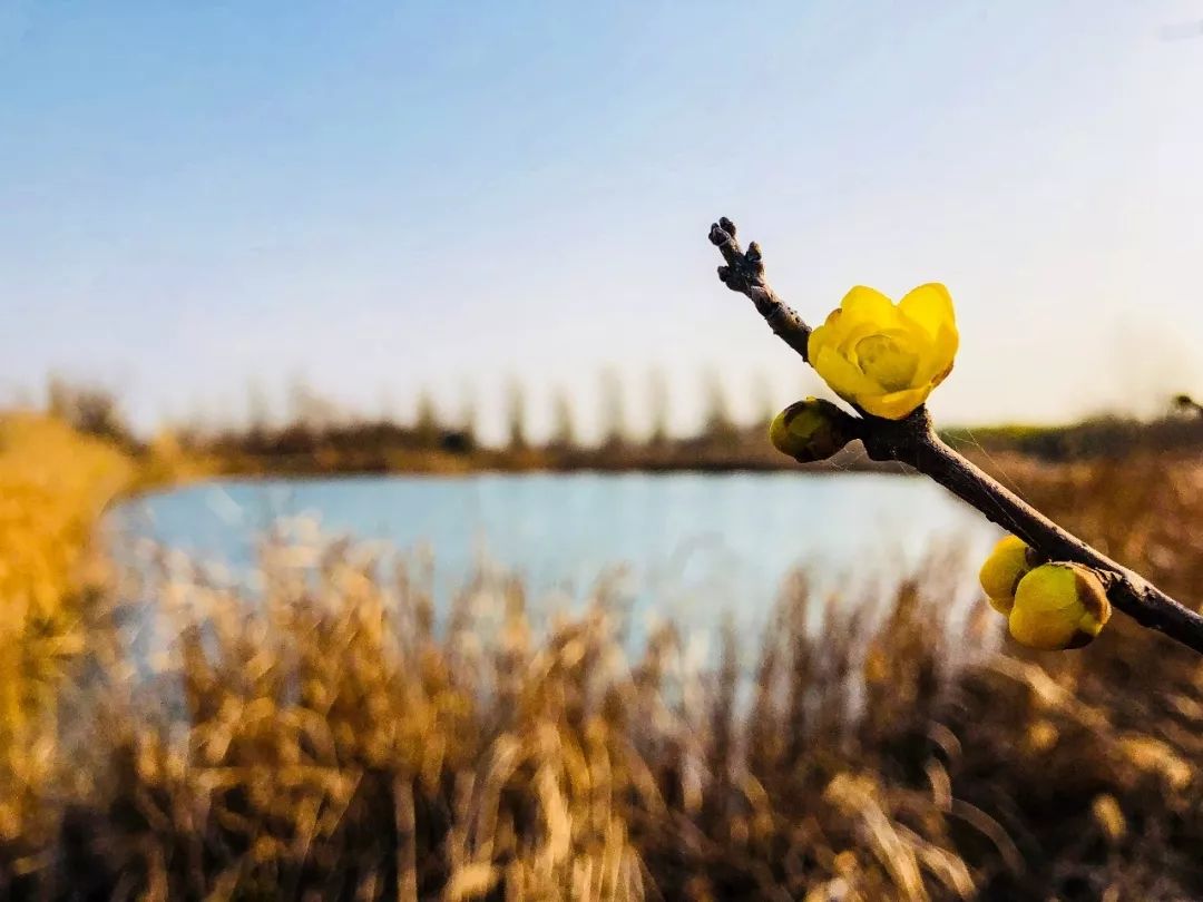 一束浅冬的腊梅花,鹅黄的淡雅,轻抚了连日来心底的焦虑,靓丽了初冬的景致。洪泽湖湿地梅园里的腊梅盛开啦!
