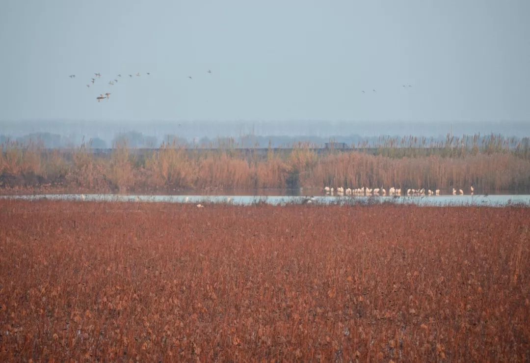 湖水潺潺、鸟儿嬉戏湖边,冬日的洪泽湖湿地,犹如一曲悠扬的乐章。