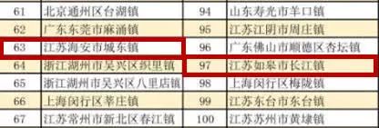 在中国乡镇综合竞争力百强榜单中,江苏以31个乡镇入围百强榜单居各省首位,其中,南通2个镇上榜,分别是海安市城东镇和如皋市长江镇,分别位列全国第63和97名。