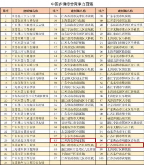 中国乡镇综合竞争力百强榜