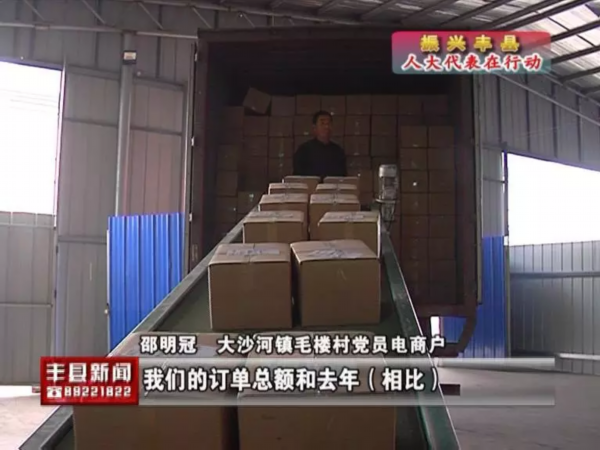 大沙河镇毛楼村党员电商户邵明冠正在往这里运送即将发出的苹果,他告诉记者,今年九月份大沙河镇实施的电商“红领”工程让他今年的网上果品销售生意有了一个大的跨越。