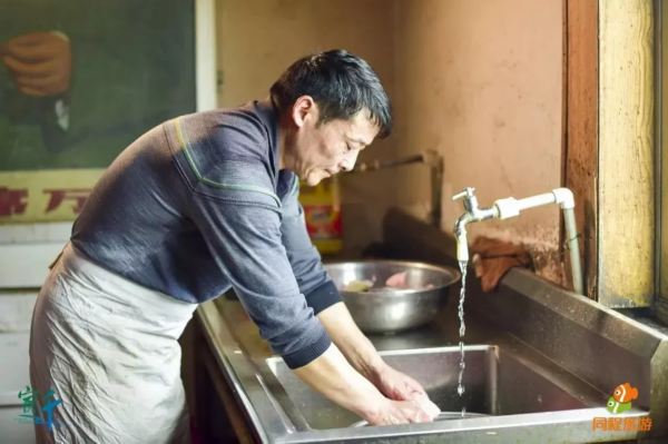 你大可以早晨来到古镇,那时候雾蒙蒙的,财神庙西边的皂河叶家贡饼,热腾腾的乾隆贡酥刚出炉,通圣大街上,糁汤的香气飘出好远。饭馆里忙碌的声音也传了出来:洗锅淘米,杀鱼,和面......这是古镇人家的生活。