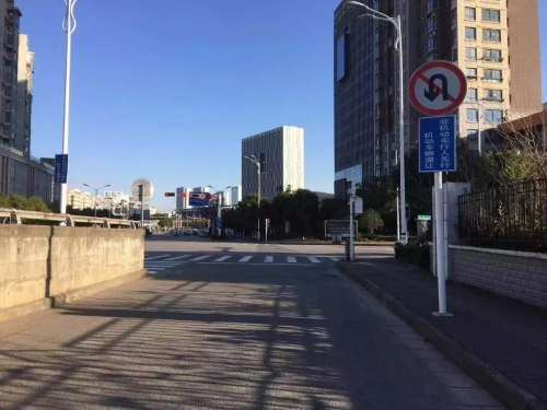 西侧车道(下桥方向),原先道路的最右侧为机非混行,机动车和非机动车互相抢道,尤其早晚高峰期间秩序较乱,事故频发。此次,将原先的右转车道调整为非机动车道,将一条直行车道调整为直右车道,同时增设了隔离护栏、软性警示桩、提示标志以及非机动车通行的地面图案标识等相关设施,进一步保障非机动车通行安全。