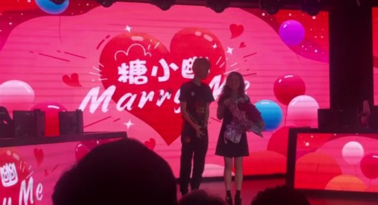 腾讯体育讯 北京时间12月30日,FPX战队中单选手Doinb(金太相)迎来喜讯,在FPX一周年的庆典上,Doinb向交往三年的女朋友“糖小幽”(原名李幽子)求婚成功。对于两人的爱情,众多粉丝和观众也大方的送上祝福。