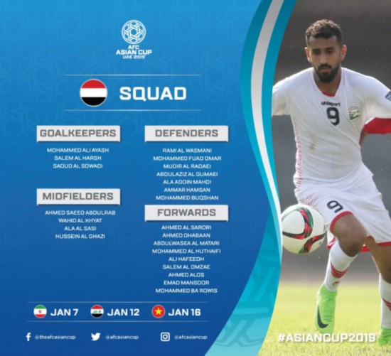2019年亚洲杯,也门同伊朗,伊拉克和越南同在D组。