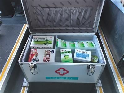 刘宝中还准备了雨伞、雨衣,以及一个应急医药箱,风油精、感冒药、创可贴、纱布等一应俱全。