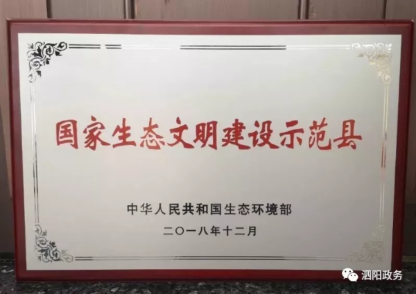 在全市率先创成国家生态文明建设示范县。