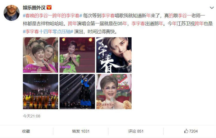 网友们表示,每次等到李宇春唱歌,就知道新年来了。