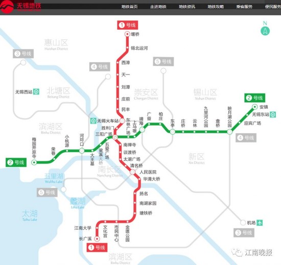 2014年7月1日、12月28日无锡地铁1、2号线先后通车运营,无锡成为当时全国第一个,一年内通车2条线并形成“十字架”的城市。