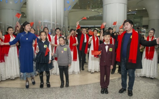 12月30日下午,无锡市音乐文学学会的艺术创作者们和灵山尚善艺术团的歌唱爱好者们,齐聚在地铁三阳广场的地下换乘中心,为广大锡城市民送上了一台别具一格的迎新“快闪音乐会”,