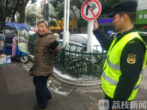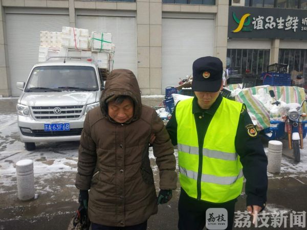 2018年的最后一场雪带给市民的不止浪漫,更有出行不便。今天(12月31日)清晨,已巡查了一夜雪情的南京市浦口区城管局执法队员开车经过江淼路,发现寒风中有一位老人站在雪地里瑟瑟发抖。