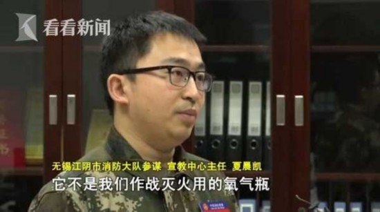 无锡江阴市消防大队参谋宣教中心主任夏晨凯表示,家用的制氧机不是消防员作战灭火用的氧气瓶,和相关的空气呼吸器是有很大差别的。一旦发生火灾以后,有毒的高温烟气还是非常容易地进到呼吸系统的,会造成灼伤和毒气中毒。