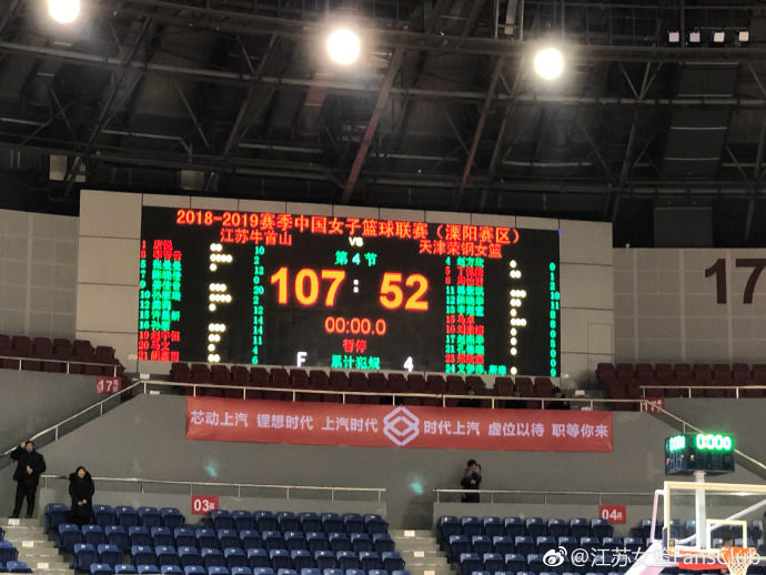 荔枝新闻讯 北京时间2019年1月2日晚,2018-2019赛季WCBA联赛第28轮结束一场比赛,联赛排名第三的江苏牛首山女篮主场迎战联赛排名倒数第二的天津女篮。经过四节比赛的较量,江苏牛首山女篮主场以107:52狂胜天津女篮,守住了联赛第三的排名。