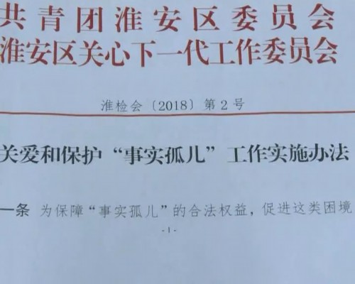 日前,淮安市首例“事实孤儿”在淮安区人民法院提起诉讼,案件的判决为今后全市开展“事实孤儿”认定救助工作提供法律依据。
