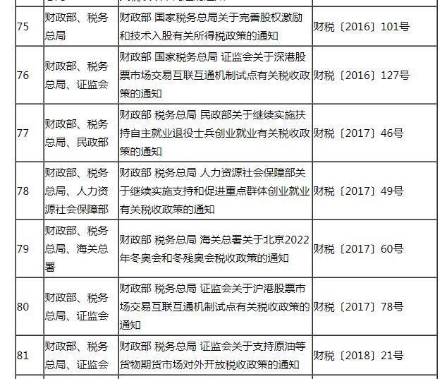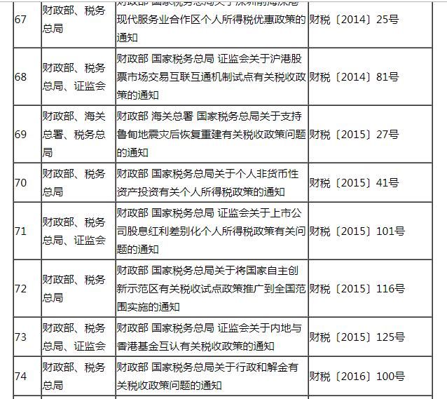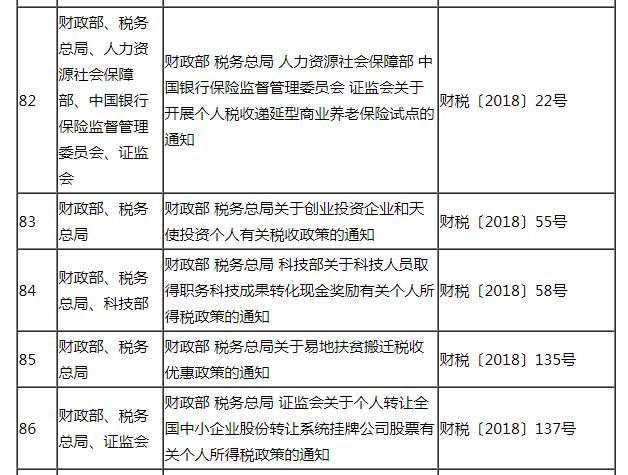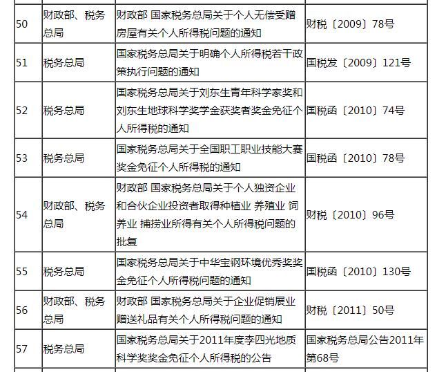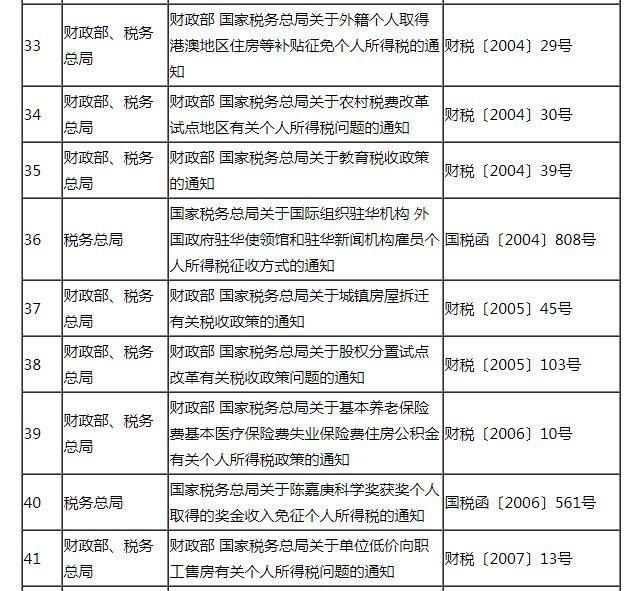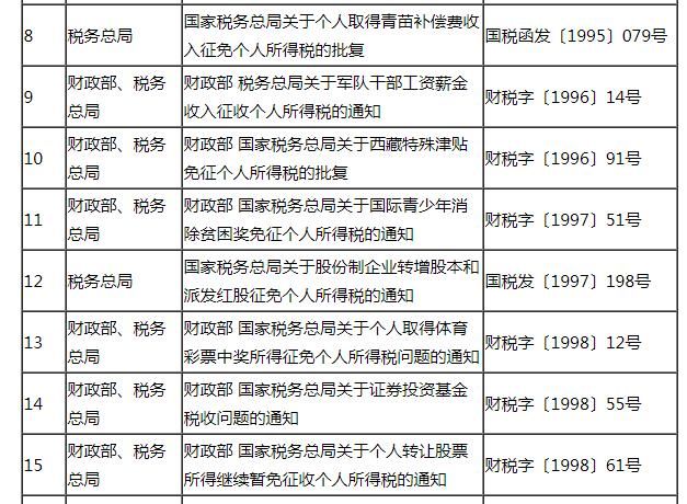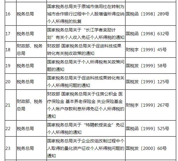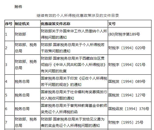 附:继续有效的个人所得税优惠政策涉及的文件目录