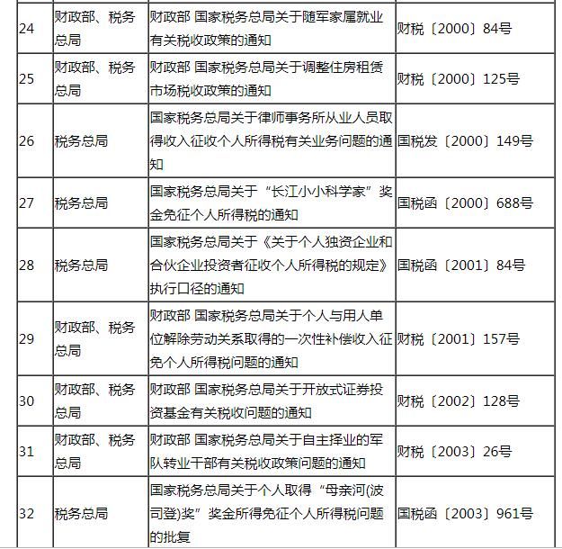 注:上述文件中个人所得税优惠政策继续有效,已废止或者失效的部分条款除外。