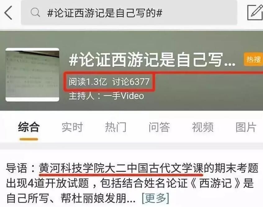 日前《西游记》又上热搜,起因竟是郑州市黄河科技学院古代文学的期末考试题,要求结合本人姓名,论证《西游记》是自己所写。