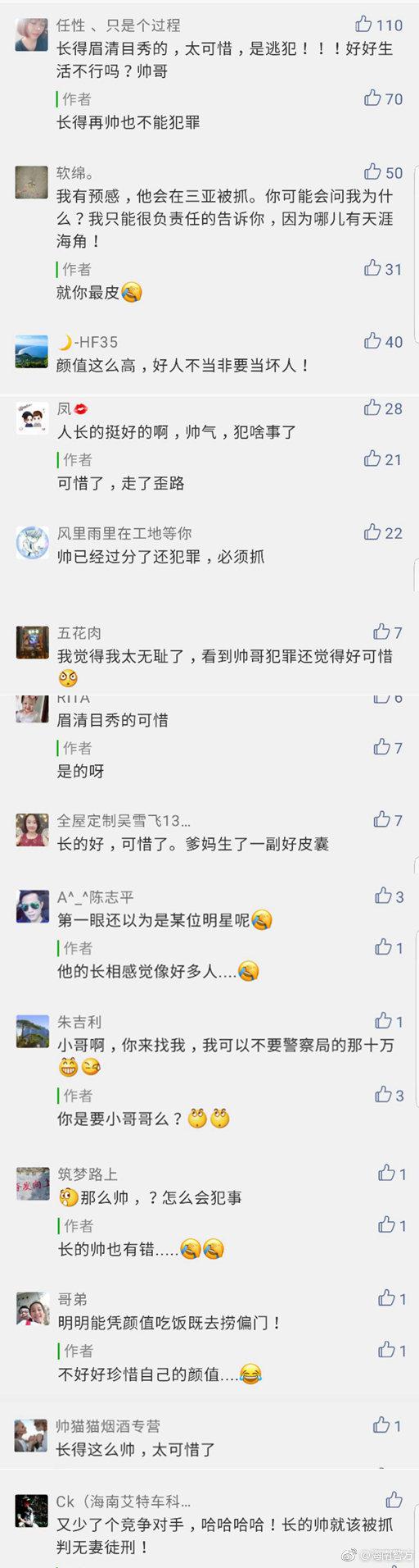 【男版高颜值通缉犯走红网络!现已落网】12月21日,在海南警方公布的通缉涉黑涉恶在逃人员通告中,一位名叫“李庆武 ”的男性犯罪嫌疑人,因高颜值照片意外走红。据海南省公安厅扫黑办透露,李庆武涉嫌参加黑社会性质组织罪,已于通缉令发布4天后,12月25日主动投案自首。网友戏称“长得再帅也跑不了,因为海南有天涯海角”。
