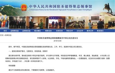 事发后,中国总领馆发布了“特别提醒旅圣中国公民注意安全”的通知。网站截图