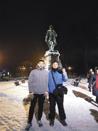 图为朱川(左)和赵文勇(右)在圣彼得堡合影。受访者供图