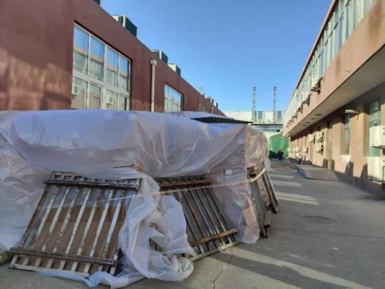 权健厂房附近堆满了火疗使用的精油、卫生巾产等产品。