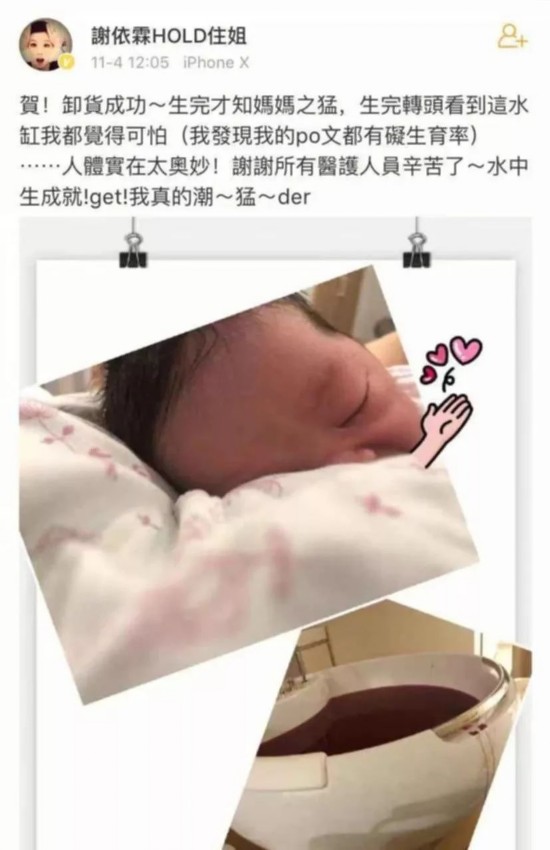 事实上,除了我们常说的“无痛分娩”——椎管内分娩镇痛法外,其实还有更多可以缓解疼痛的分娩方式可供选择。如水中分娩、外周神经和肌肉刺激器(俗称镇痛仪、导乐仪)镇痛法、自由体位分娩、按摩疗法和冥想瑜伽等。女星谢依霖就在产后晒出了她水中分娩使用的水盆。